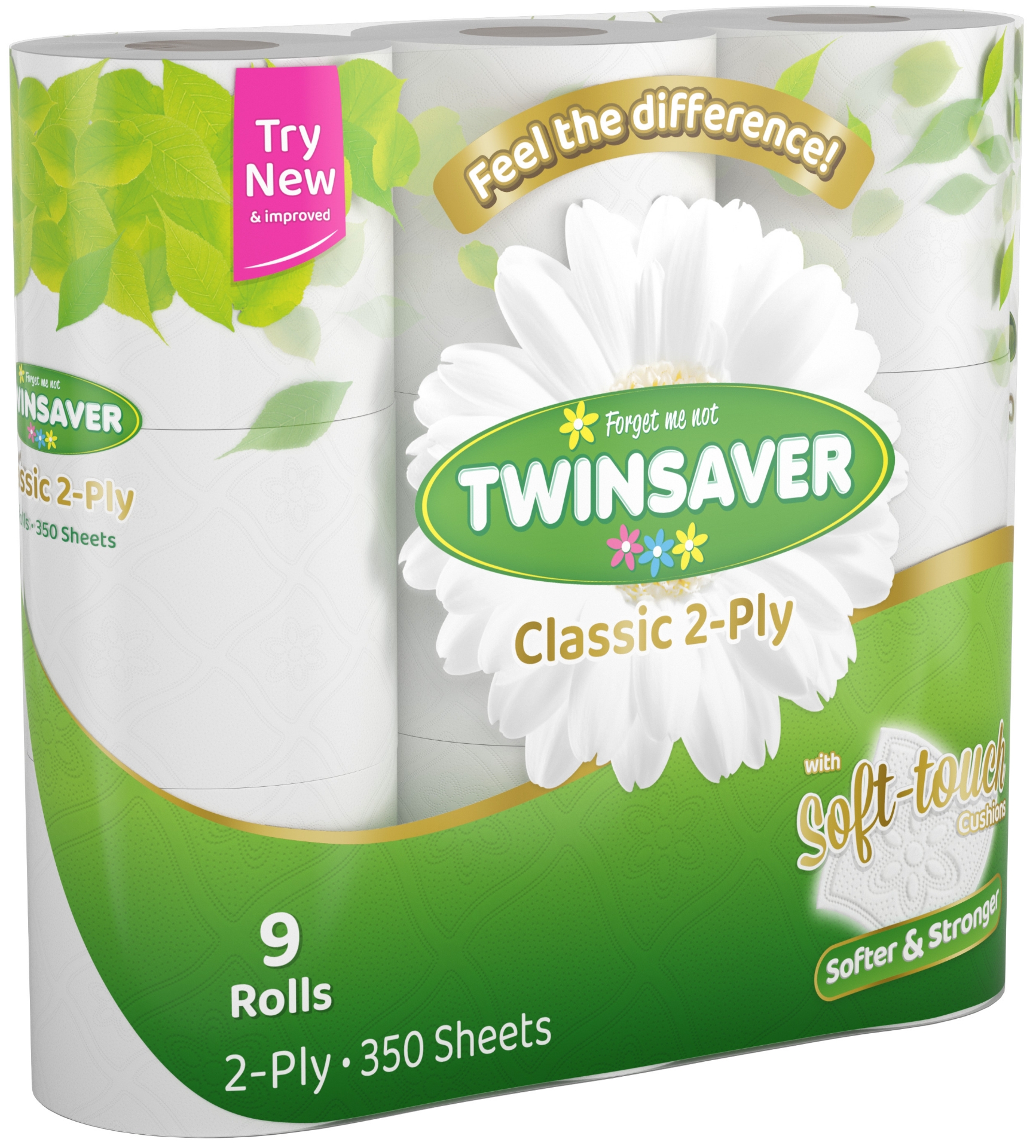 - TWINSAVER Luxury Toilet Paper - Unwrapped - 2 Ply - 350 Sheets - 9 Rolls